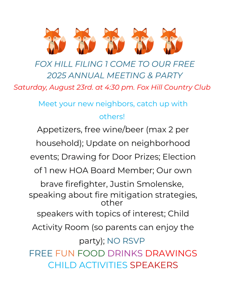 Join us for our Annual HOA Meeting and Neighborhood Party, where we’ll come together to discuss some exciting updates and upcoming changes within our community.